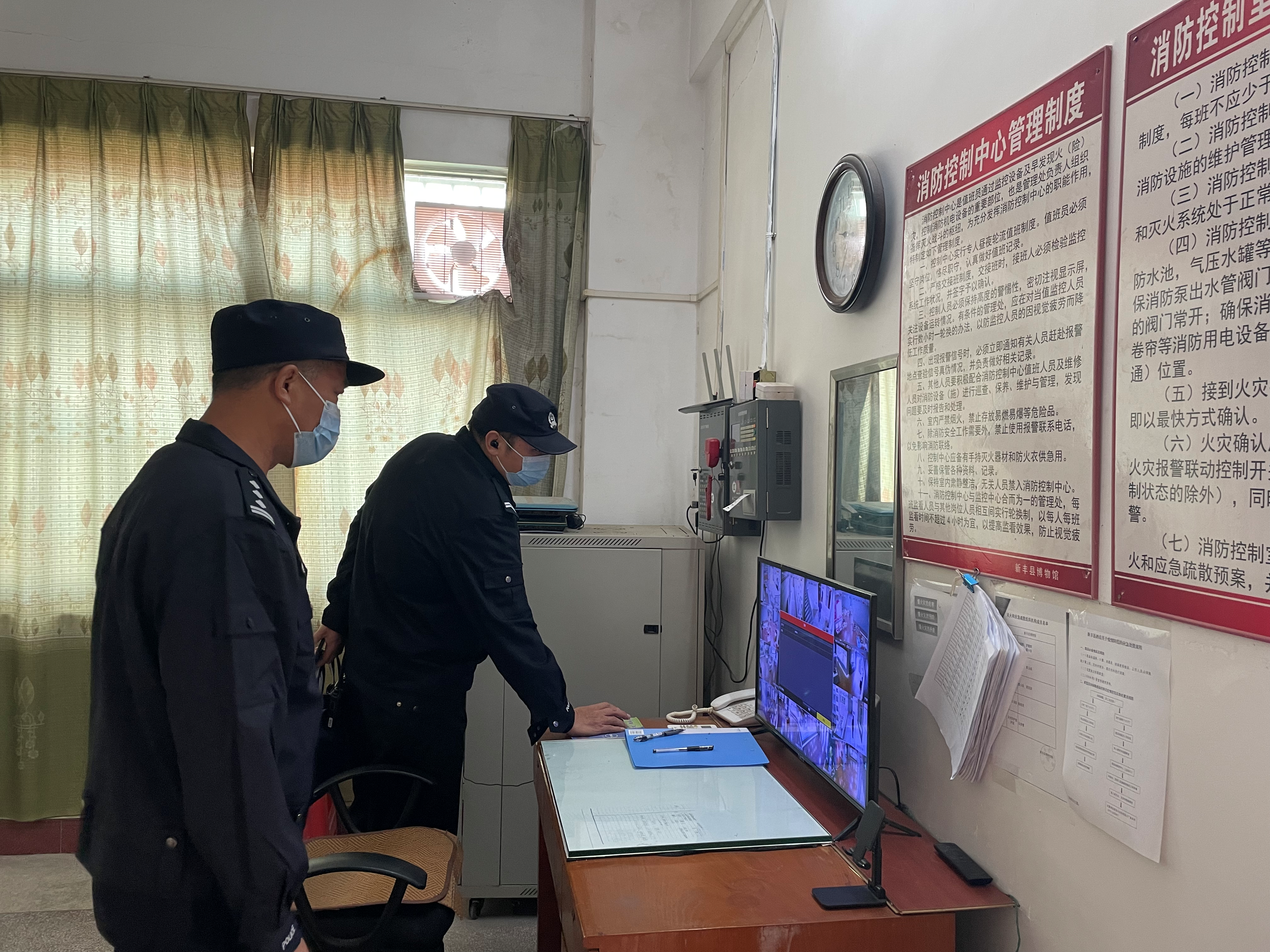 县派出所工作人员到馆检查消防安全设备