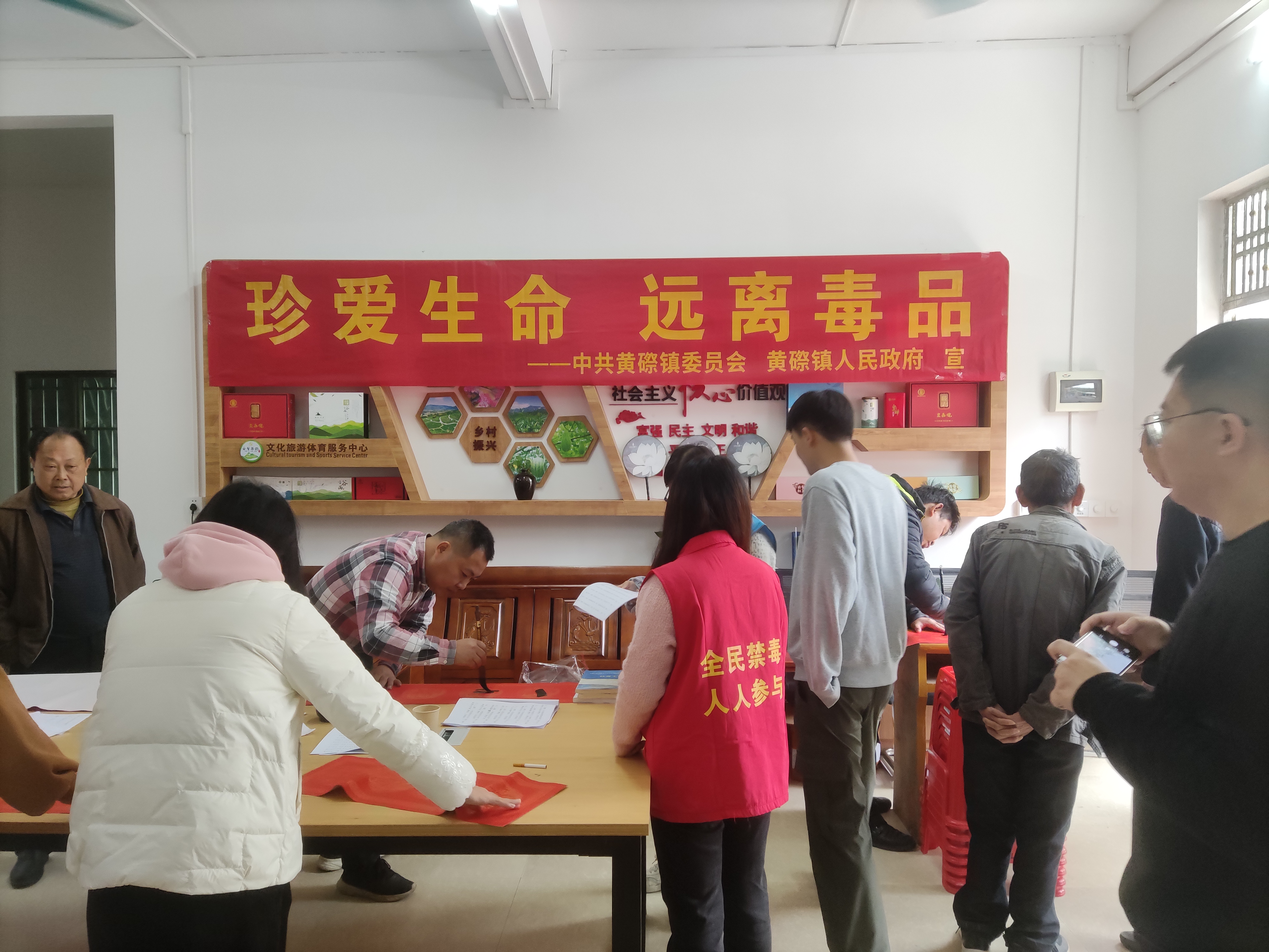 黄磜镇开展“义写春联迎新春 浓浓墨香宣禁毒”禁毒宣传活动
