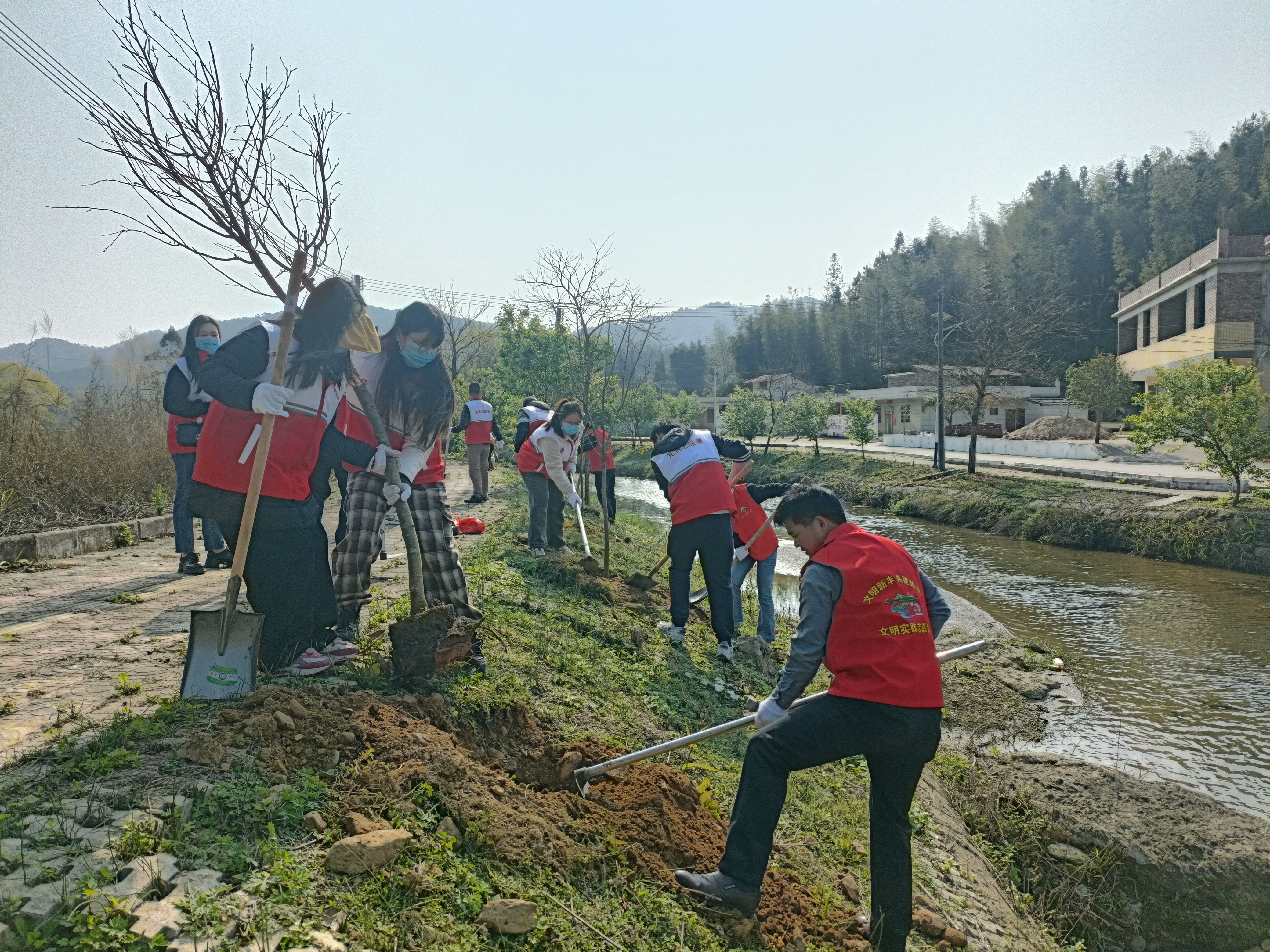 近日,黄磜镇妇联、营盘村妇联以“三八”妇女节、“3·12”植树节为契机,分别组织巾帼志愿者开展“同植幸福树 共建绿美家”植树活动。活动现场,身穿红马甲的巾帼志愿者们争先恐后,干劲十足,以饱满的热情投入到植树活动当中,刨坑、放树、填土、浇水,大家分工协作、密切配合,齐心协力种下一片孕育着绿色希望的“巾帼林”,展现了巾帼志愿者良好的精神风貌和积极向上的环保态度,为建设美丽黄磜、推进乡村振兴贡献了巾帼力量。