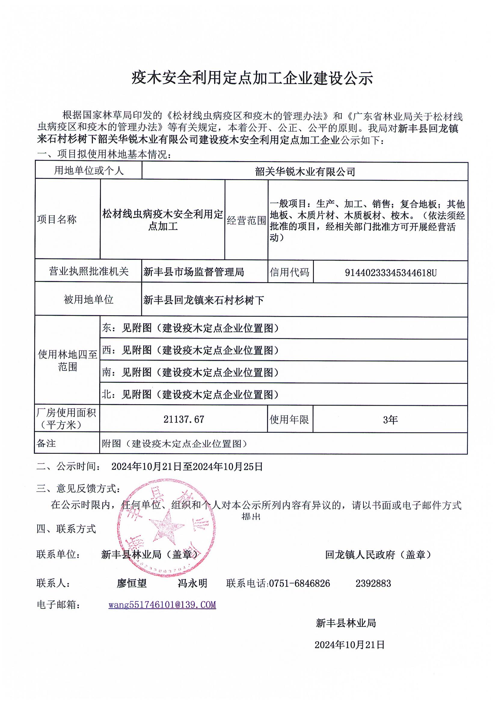 2024年韶关华锐木业有限公司申请疫木定点加工公示