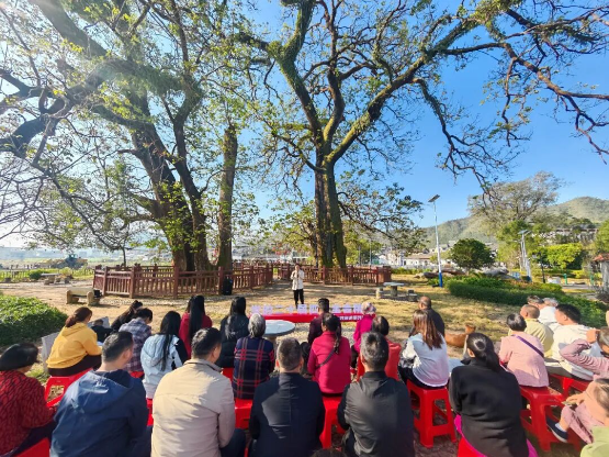 文旅发展的脉络,也以古树下的服务阵地为核心有效串联。秀田村以党群服务中心为核心,串联起大陂村村史馆、秀坑村新丰江水库移民展示中心、秀田村古树公园,打造红色研学、生态漫游特色线路,构建起集红色教育、生态观光、文化传承于一体的文旅体系。同时深挖古树文化、客家民俗资源,累计开展非遗体验、戏曲进乡村等活动20余场,参与村民超700人次,让老文化焕发新活力,也让这个小小的服务阵地,成了乡村文化IP的孵化地。