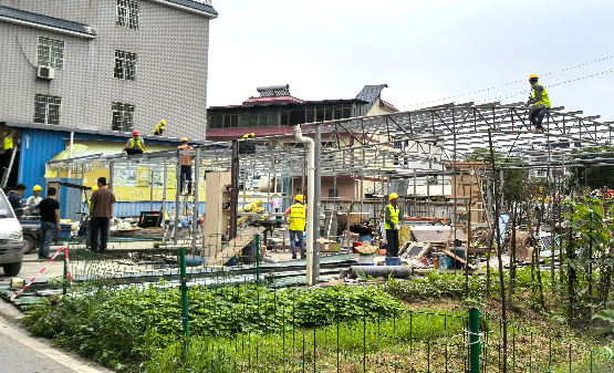 专项行动当天共出动工作人员75人、机械设备4台,现场分工明确、秩序井然,严格按照规范流程推进整治作业。工作人员全程参与安全把控,始终优先考虑户主合法权益,按照户主的要求,对铁皮棚内的物品进行有序搬离、妥善安置,用细致服务化解群众顾虑。施工人员操作机械设备,对违建铁皮棚进行安全、高效拆除。