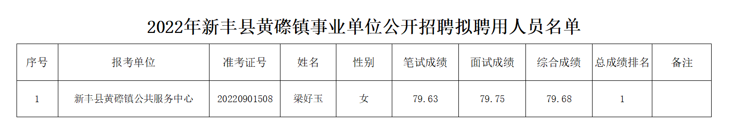 2022年新丰县黄磜镇事业单位公开招聘拟聘用人员公示