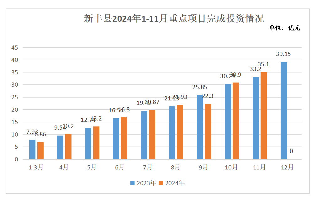 (一)重点项目进展情况。全县103个重点项目,截至10月底,已开工92个,开工率89.3%。1-11月累计完成投资35.1亿元,完成进度占年度计划投资68.8%。其中,我县牵头的23个市重点项目1-11月累计完成投资26.9亿元,完成进度为110.6%。我县牵头的3个省重点项目1-11月累计完成年度投资12.6亿元,占年度计划投资计划的105%。