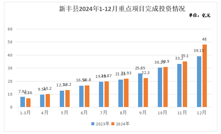 (一)重点项目进展情况。全县103个重点项目,截至12月底,已开工99个,开工率96.1%。1-12月累计完成投资48亿元,完成进度占年度计划投资94%。其中,我县牵头的23个市重点项目1-12月累计完成投资28.8亿元,完成进度为118%。我县牵头的3个省重点项目1-12月累计完成年度投资13.6亿元,占年度计划投资计划的113%。