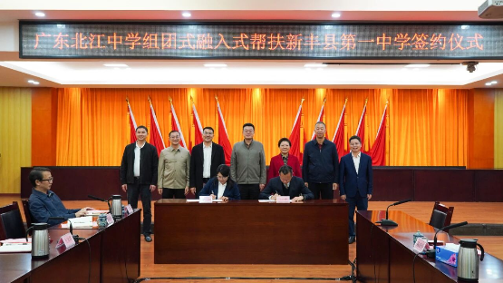 12月23日,广东北江中学组团式融入式帮扶新丰县第一中学签约仪式在我县举行。县委副书记、县长侯新祥,县委副书记易建军,县领导钟卫苏、叶森林、左文翠,市教育局副局长梁丽娟,广东北江中学党委书记钟永红及校长刘国锋共同见证粤北教育协同发展的重要时刻。