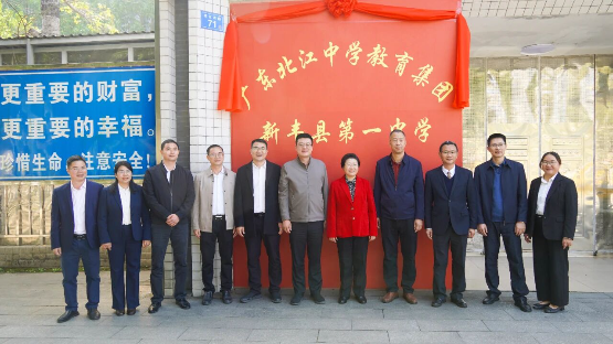 签约仪式后,与会领导嘉宾一同前往新丰一中,为“广东北江中学教育集团新丰县第一中学”揭牌。随后,一行人深入校园走访调研,详细了解学校教育教学开展情况及设施设备配置现状,为后续帮扶工作精准施策奠定基础。