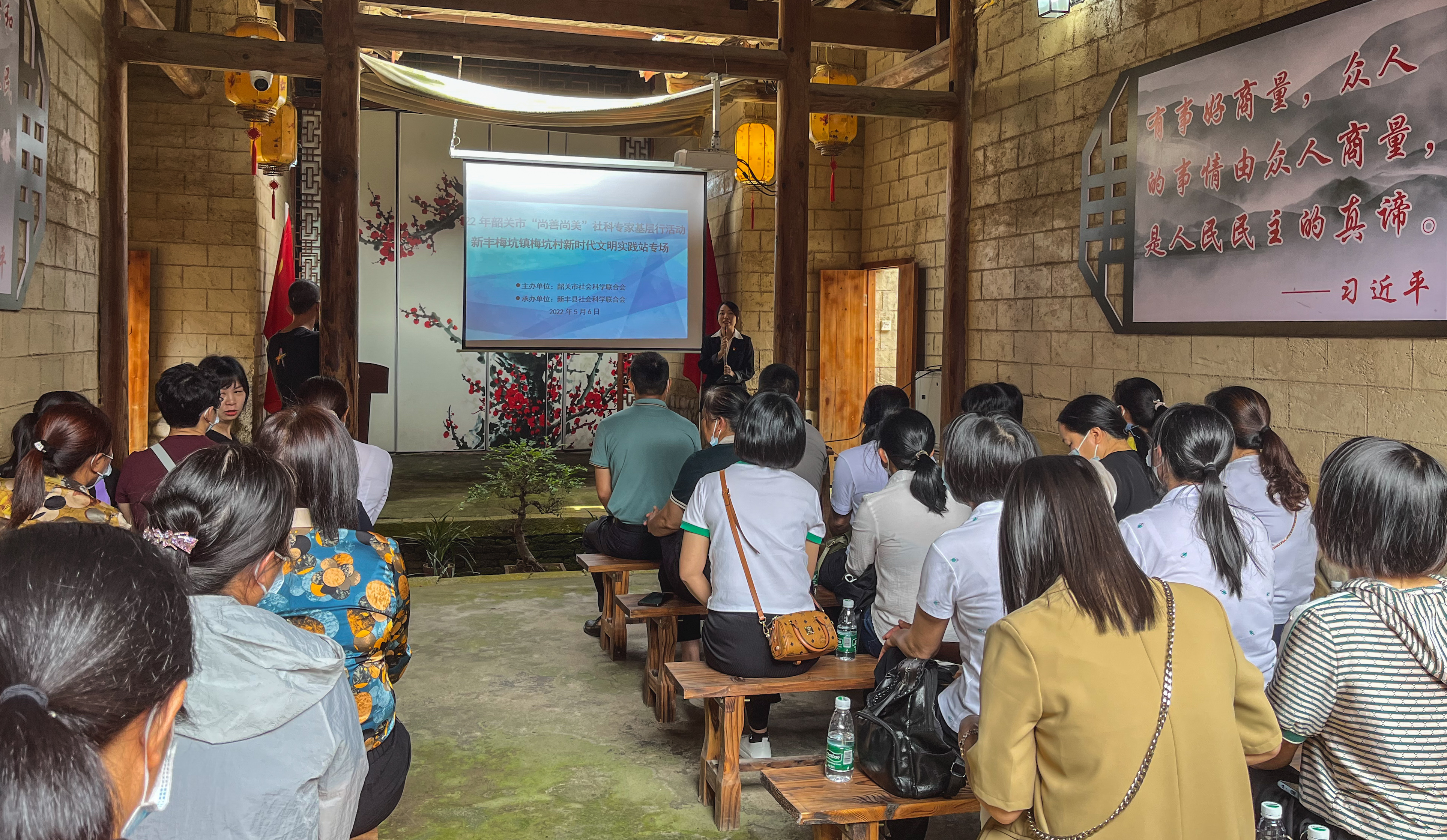 为深入学习贯彻习近平新时代中国特色社会主义思想和党的十九届六中全会精神,做好党的新政策、新理论宣传阐释工作,培育和践行社会主义核心价值观,面向村民群众普及社会科学知识,弘扬中华优秀传统文化,提升公众人文素养。5月6日上午,梅坑镇在梅坑村新时代文明实践站开展“新时代精神文明建设与社会主义核心价值观的弘扬”专题讲座,镇村干部及村民群众共约40人参加活动。
